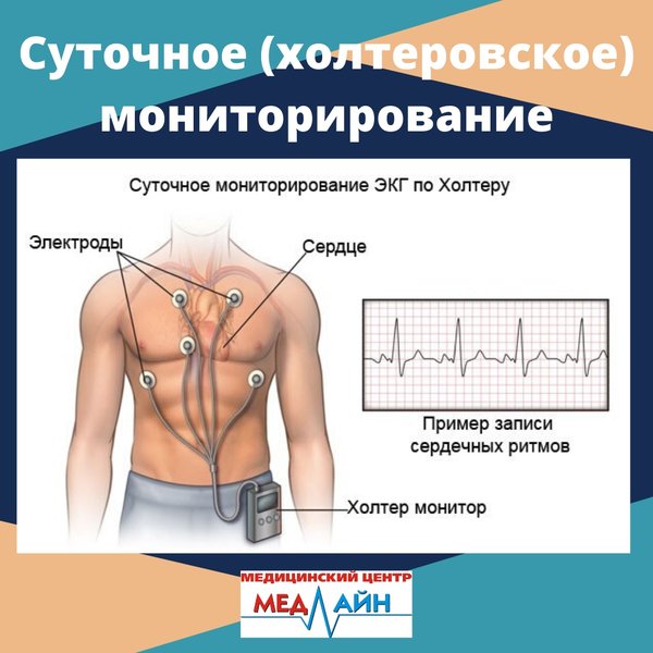 рмацию о работе сердца и подсоединенные к портативному прибору, в котором происходит обработка полученных данных и регистрация их в виде графических кривых – электрокардиограмм, сохраняющихся в памяти устройства. Если пациенту одновременно накладывается манжета на плечо (аналог обычного аппарата для измерения артериального давления – тонометр), то в таком случае мониторирование позволяет осуществлять динамику измерений АД за сутки осциллометрическим (электронным) способом. В диагностически неясных случаях исследование может быть продлено до семи суток, если за первые 24 часа не произошло успешной регистрации патологических изменений на ЭКГ, а пациента продолжают беспокоить симптомы, по поводу которых и назначалось обследование. Исследование проводит врач Высшей квалификационной категории Наши двери открыты для Вас в будние дни с 9.00 до 20.00, в субботу с 9.00 до 14.00, в воскресенье — выходной. ⠀ Мы располагаемся по адресу: г.Нур-Султан, ул.Кумисбекова 8, ВП-20. ⠀ Тел: 23-72-72, 23-60-77,,