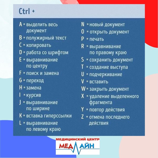 Знание горячих клавиш на клавиатуре компьютера/ноутбука сокращает время работы Не забудьте сохранить в закладки Наши двери открыты для Вас в будние дни с с 08:00 до 20:00, в субботу с с 08:00 до 14:00, в воскресенье — выходной. ⠀ Мы располагаемся по адресу: г.Нур-Султан, ул.Кумисбекова 8, ВП-20. ⠀ Запись по тел: 23-72-72, 23-60-77,, ⠀