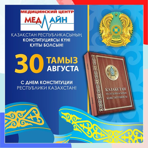 С Днём Конституции Республики Казахстан! Наши двери открыты для Вас в будние дни с с 08:00 до 20:00, в субботу с с 08:00 до 14:00, в воскресенье — выходной. ⠀ Мы располагаемся по адресу: г.Нур-Султан, ул.Кумисбекова 8, ВП-20. ⠀ Запись по тел: 23-72-72, 23-60-77,, ⠀