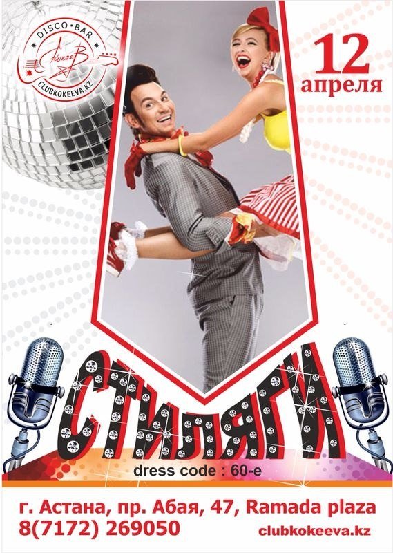Диско-Бар-Ерлана-Кокеева Ретро-Шлягер (07.04.2014): Мы несем заряд позитивного настроения все нашим гостям! Приглашаем вас окунуться в эпоху романтики и ретро! Вечеринка «Стиляги» — это будет незабываемо!