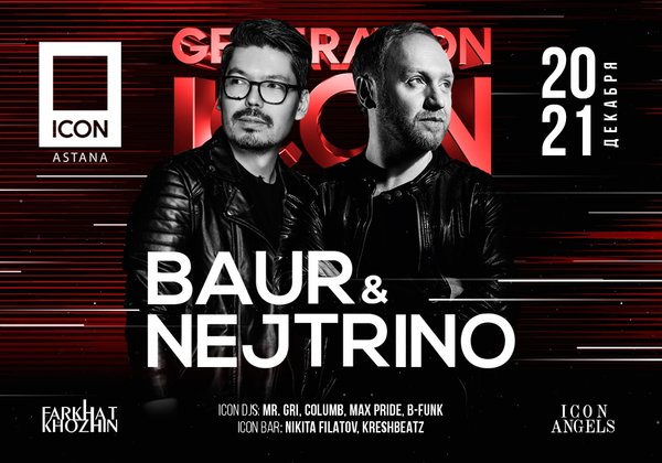 20—21 декабря ICON принимает старых друзей, двух талантливых московских диджеев и продюсеров — Nejtrino & Baur. Каждые выходные они играют свои сеты на лучших танцевальных площадках не только России, но и стран СНГ, их ремиксы постоянно звучат на ведущих радиостанциях. Кроме того, они являются авторами одного из самых скачиваемых радиошоу Record Megamix и ведущими программы Record Club. ICON, let's party! ⠀ пр. Туран 21 // Turan av.