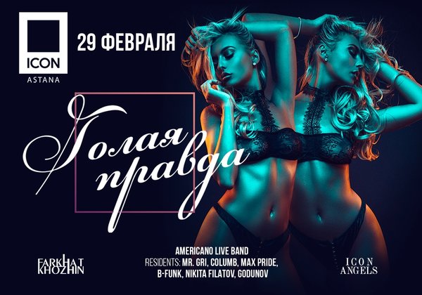 29 февраля ICON представит продолжение фирменной вечеринки «Голая правда». Шоу, открывающее новые горизонты чувственности. Нужно лишь не испугаться и сделать шаг навстречу своим желаниям. Доверьтесь страстному языку тела, он не подведет ⠀ START 22:00 / AMERICANO LIVE BAND Забронируйте лучший столик!