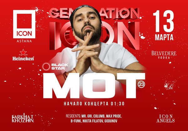 13 марта большой клубный концерт в ICON даст звезда лейбла Black Star, один из самых востребованных рэперов России; молодой и колоритный исполнитель с своим стилем и самобытной манерой. — Мот. ⠀ Партнёры вечеринки: Heineken Belvedere vodka ⠀ Информация и резерв: