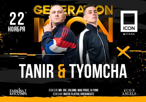 22 ноября на сцене ICON выступит самобытный дуэт из южной столицы — Tanir & Tyomcha. Еще будучи в составе группы Da Gudda Jazz артисты стали популярны не только на родине, но и за ее пределами. Сейчас их хиты штурмуют чарты и находят мгновенный отклик у аудитории. «Разбуди меня», «Кроме нее», «Da Da Da» — эти и другие хиты в рамках вечеринки Generation ICON. ⠀ Забронируйте лучший столик! пр. Туран 21 // Turan av.