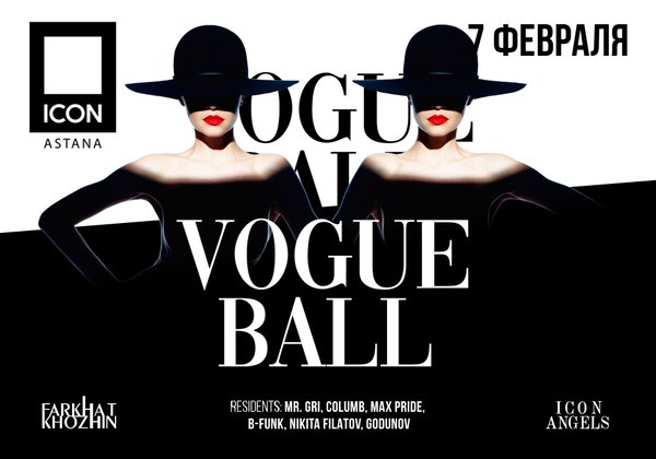 13—14 сентября ICON открывает новый клубный сезон стильной вечеринкой «Vogue ball». Танец прямиком с подиума! Это коктейль из затейливых поз манекенщиц модного журнала Vogue, сочетающий в себе абсолютную сексуальность, дерзость, стиль и эпатаж. Ожившие модели со страниц культового журнала будут удивлять и восхищать гостей со сцены ICON. INFO & RESERVE пр. Туран 21 // Turan av.