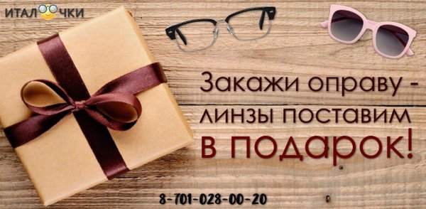 Только в салоне оптики «ИталОчки» при покупке оправы — итальянские линзы мы установим в подарок! Ждем по адресу: г.Астана ул.Акмешит д.5 тел:;