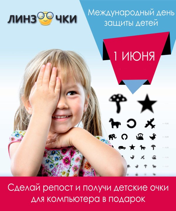 В честь дня защиты детей!!!детские очки для компьютера в подарок за репост! Все что нужно для участия в конкурсе: 1. Состоять в нашей группе: 2. Сделать репост данной записи на свою страницу и не удалять до конца конкурса. Победители конкурса будут выбраны 15 июня 2017 г.