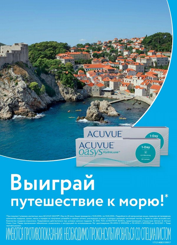 Супер конкурс от наших партнеров. При покупке 2 упаковок контактных линз Acuvue Oasys 1-day, у Вас есть возможность выиграть путешествие или подарочную карту Beautymania. Торопитесь акция действует с 15 марта 2018 г. — 15 мая 2018 г. Ждем Вас по адресу г.Астана ул.Акмешит д.5 тел: