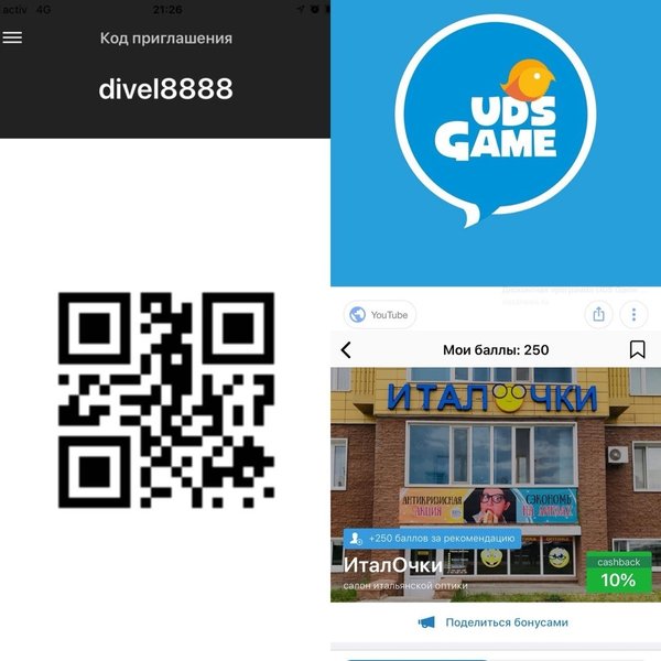 Присоединяйтесь к нам в UDS Game, приглашайте друзей и зарабатывайте баллы для бесплатных покупок. Все очень просто: скачайте приложение, введите код приглашения и получите 250 баллов в подарок, выберите вкладку поделиться бонусами, отправьте своим друзьям и за каждую покупку вашего друга вам будут начисляться проценты. Накопленными бонусными баллами можете оплачивать покупки в нашем салоне. Тел: