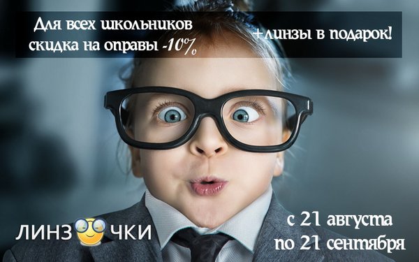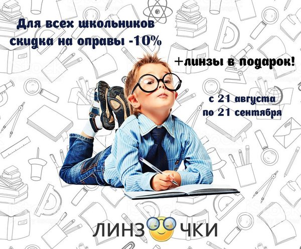 Друзья, к началу учебного года мы приготовили подарки в школу для Ваших деток, новинки детских оправ и скидки для школьников!