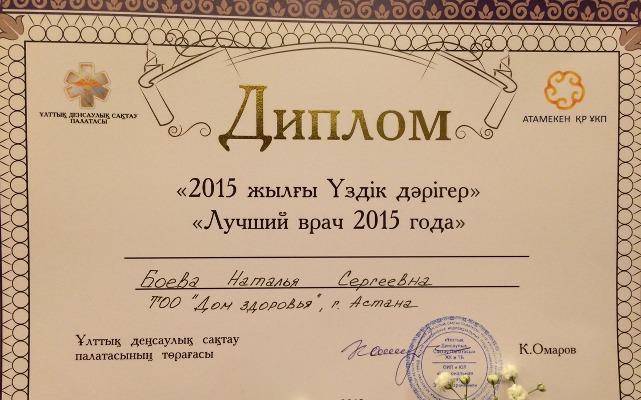 Победитель конкурса "Врач года" 2015 г. в по версии Национальной палаты здравоохранения РК