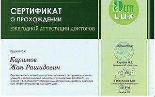 2021 — Прохождение ежегодной аттестации докторов, организатор Dent–Lux, г. Астана;