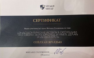 2018 — Курс повышения квалификации по теме «ENDODONTICSefficiencyandeffectiveness», организатор Украинское Эндодонтическое Общество, спикер Кулыгин Олег, г. Актобе;