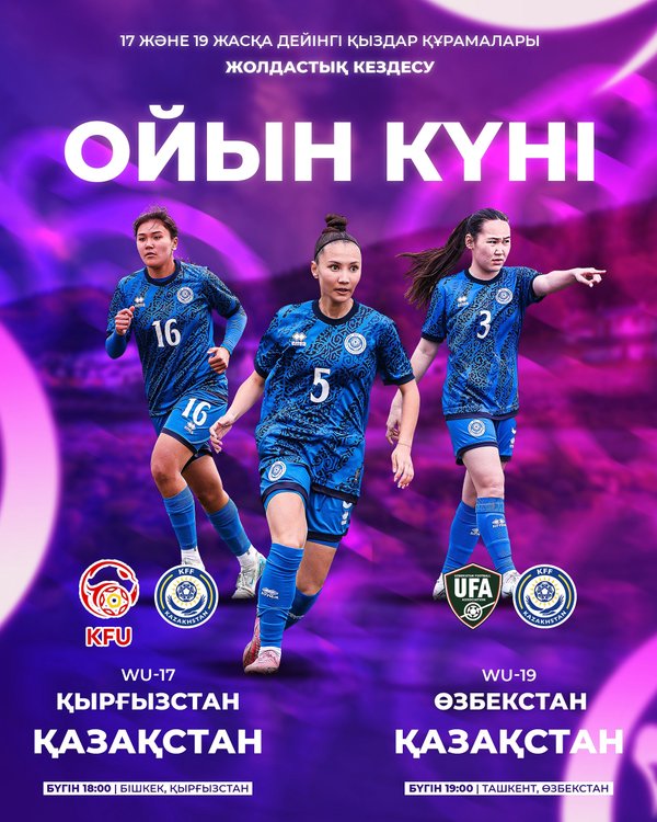 Бүгін Қазақстан WU19 және WU17 құрамалары жолдастық ойындарын өткізеді. Екі кездесу де YouTube-та тікелей эфирден көрсетіледі. Жолдастық матч. Екінші ойын 30.05.2025 | 18:00 Қырғызстан WU17 – Қазақстан WU17 ҰФА, Бішкек Жолдастық матч. Бірінші ойын 30.05.2025 | 19:00 Өзбекстан WU19 – Қазақстан WU19 ӨФҚ базасы, Ташкент