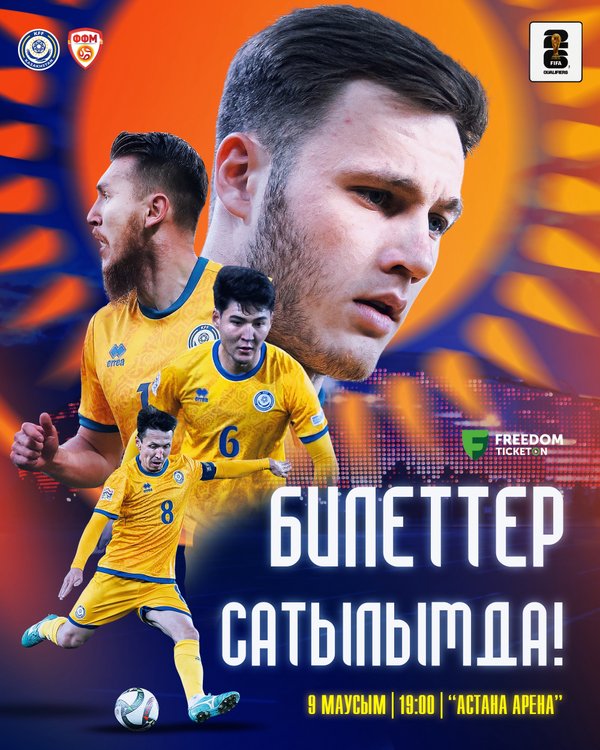 Қазақстан – С.Македония 2026-Әлем чемпионаты | Іріктеу кезеңі 09.06.2025 | 19:00 ️ «Астана Арена», Астана ️ Билеттер Ticketon.kz сайтында