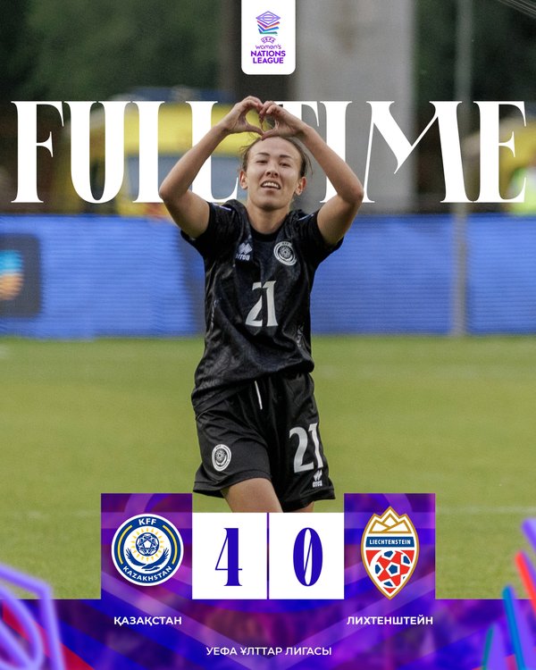 МАҢЫЗДЫ ЖЕҢІС! Ұлттық құрама Лихтенштейн құрамасы 4:0 есебімен сенімді жеңіске жетті. Карина Берікова дубль авторы атанса, Әселхан Тұрлыбекова мен Мадина Жаңатаева бір голдан соқты. Алда шешуші ойын – Люксембургке қарсы кездесу 3 маусымда Алматының Орталық стадионвнда өтеді.