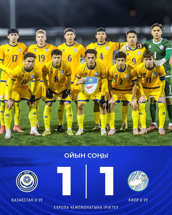 ТАРИИИХ! ҚАЗАҚСТАН U-19 ҚҰРАМАСЫ ЭЛИТАЛЫҚ КЕЗЕҢГЕ ЖОЛДАМА АЛДЫ Қазақстан U-19 жасөспірімдер құрамасы Еуро-2026 іріктеу кезеңінің үшінші матчында Кипр командасымен тең нәтиже көрсетті. ️ Нәтижесінде біздің жігіттер «B» дивизионының 1-тобын екінші орынмен аяқтап, элиталық кезеңге жолдама алды. Кирилл Кекер шәкірттерінің 2026 жылдың көктемінде Еуропа чемпионатының финалдық кезеңіне шығу үшін таласуға мүмкіндік алды. Қазақстан U-19 құрамасы тарихында алғаш рет элиталық кезеңге өтті. Құтты болсын, Қазақ елі!