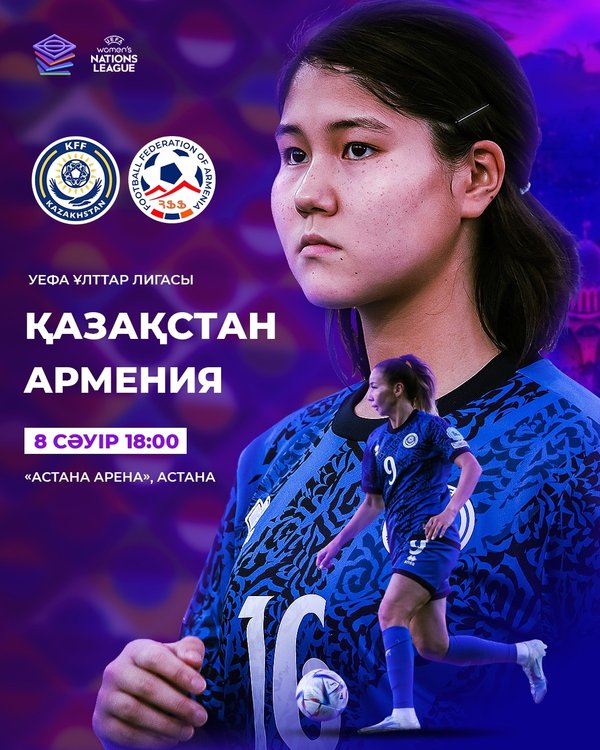 Қыздар құрамасы — Астанада Қазақстан W құрамасы УЕФА Ұлттар лигасында Арменияға қарсы матчты Астанада өткізеді. Ойын 8 сәуірде 18:00-де «Астана Аренада» өтеді. Қазақстан – Армения Ұлттар лигасы 08.04.2025 | 18:00 (АСТ) «Астана Арена», Астана ️ Кіру тегін