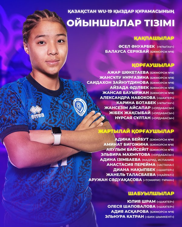 Қазақстан WU17 құрамасы Еуропа чемпионатының іріктеу кезеңін жеңіспен бастады ️ Талғар қаласындағы Ұлттық құрамалар базасында өткен ойында Қазақстан WU17 құрамасы Грузияны 4:2 есебімен жеңді. Гол соққандар: ️ ️ Жұмажанова ️ Остер ️ Жолболат