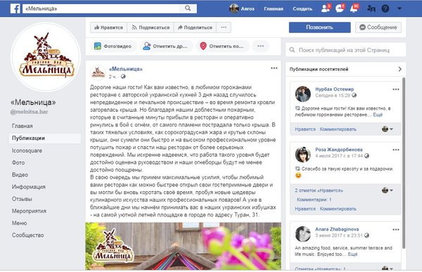 по ул. Туран, 31 ресторан «Мельница». Пожарные подразделения на место вызова прибыли уже в 15ч.12мин. На общей площади 200 кв.м. горела деревянная конструкция кровли трехэтажного ресторана Мельница. Несмотря на сильную жару, порывистый ветер и сложную конструкцию кровли огнеборцы успешно локализовали пожар уже в 16ч.56мин и ликвидировали в 17ч.18мин., тем самым удалось избежать распространения огня на близстоящие здания и избежать еще большего ущерба. Пресс-служба ДЧС города Нур-Султан