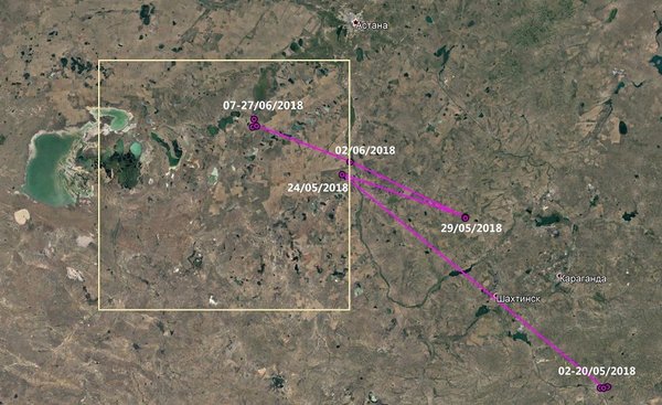 жающимися молодыми птицами, что указывает на высокую смертность орлов этой популяции на путях миграции и в местах зимовки. В этом году специалисты намерены выяснить причины этого. Для получения сведений по местам зимовки и путям миграции птиц орнитологи пометили трекерами 5 орлов (3 самца и 2 самки) из двух гнездовых группировок в окрестностях сёл Айнабулак и Кенжарык Карагандинской области. Теперь спутники GPS будут определять координаты местоположения птиц и передавать данные ученым через СМС. Подробнее читайте на нашем сайте