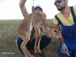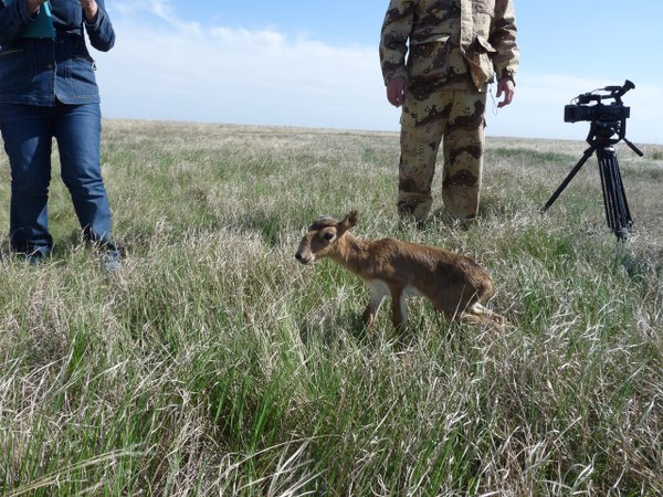 В первые недели мая специалисты АСБК традиционно проводили исследования на местах окота сайгака уральской и бетпакдалинской популяций. Во время мониторинга окота в уральской популяции нашей группой было осмотрено около 1000 новорожденных сайгачат, из них около 700 были помечены ушными бирками.