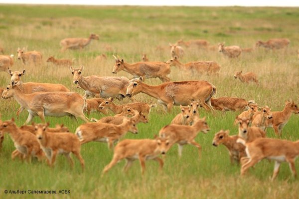 тпакдалинской популяции проходил на территории Игриз-Тургайского государственного природного резервата. Обнаружено более 10000 сайгаков, 220 сайгачат пометили ушными бирками, измерили рост и вес, а также взяли образцы биоматериалов для изучения болезней. Мониторинг окота уральской популяции проходил на 4 участках массового скопления. Здесь были учтены 620 сайгачат. На месте окота также проводились геоботанические исследования, в ходе которых подробно описывались растительные ассоциации, состояние растительного покрова и т.д. «В целом, по итогам мониторинговых работ окот сайгаков завершился благополучно. Процесс размножения сайгаков проходит хорошо. В связи с этим, в следующем году ожидается повышение популяции сайгаков». – говорит Штеффен Цутер, международный координатор Природоохранной инициативы «Алтын Дала». В завершении полевых исследований состоялась встреча группы экспертов с учащимися и преподавательским составом средней школы им. Г.Караша посёлка Борсы Жанибекского района. Дети с большим удовольствием задавали интересующие их вопросы, связанные с изучением, охраной, восстановлением сайги. По итогам встречи, администрация школы выступила с инициативой открыть при школе клуб «Друзья сайги». «Подобные исследования направлены на более детальное изучение продолжительности жизни сайги, изучение её болезней, а также позволят в будущем проследить динамику численности популяции и объединить усилия международных экспертов в сохранении и изучении сайги» — отметил в своей речи перед учащимися Альберт Салемгареев, национальный координатор Природоохранной инициативы «Алтын Дала» По итогам полевого мониторинга видимых отклонений от нормально происходящего процесса размножения сайги не наблюдалось, в период активного окота массовой гибели животных не отмечено. В период окота территории скопления круглосуточно патрулировали инспекторы РГП «ПО «Охотзоопром». В работе помимо сотрудников АСБК, приняли участие представители РГКП «ПО Охотзоопром» Комитета лесного хозяйства и животного мира МСХ РК, РГП «Научно-исследовательский институт проблем биологической безопасности», Национального референтного центра по ветеринарии, Королевского ветеринарного колледжа Лондона (Великобритания), корреспондент BBC в Казахстане, корреспондент National Geographic, а также эксперты, студенты-волонтеры из Казахского Аграрного Университета, аспиранты-ветеринары с России, Германии, Англии и Индии.