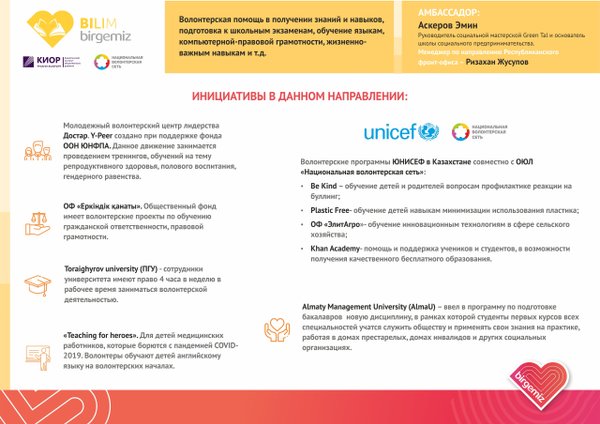 Республиканский Фронт-офис волонтеров «Birgemiz» (11.10.2020): Birgemiz: BILIM