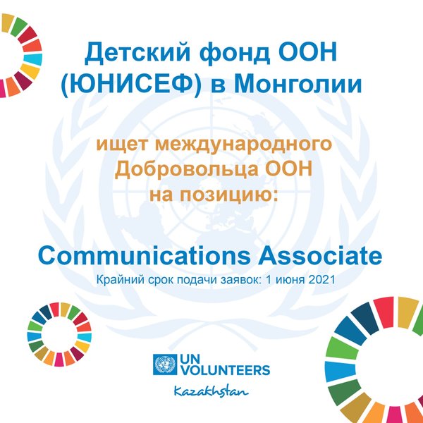 Станьте международным Добровольцем ООН в прекрасной команде ЮНИСЕФ в Монголии в качестве Communications Associate Требования: Возраст: от 18 до 29 лет Степень бакалавра (или эквивалент) в области связей с общественностью, журналистики или в смежных специальностях; Опыт работы: 2 года Знание языков: Английский (fluent) Подать заявку: ⏱ Крайний срок подачи заявок: 1 июня 2021