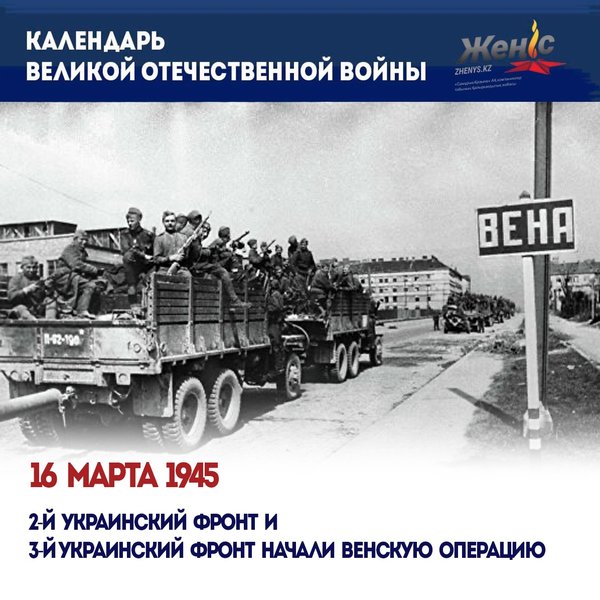е 130 тысяч солдат и офицеров, уничтожили и захватили свыше 1300 танков и штурмовых орудий, более 2250 полевых орудий. ⠀ Потери советских войск составили 167 940 человек, из них 38 661 – безвозвратные, 603 танка и САУ, 764 орудия и миномета, 614 самолетов. ⠀ За мужество, героизм и высокое воинское мастерство, проявленные в ходе Венской операции, 50 соединений и частей удостоены почетного наименования «Венские». ⠀ Указом Президиума Верховного Совета СССР от 9 июня 1945 года учреждена медаль «За взятие Вены», которой были награждены более 268 тысяч советских воинов. ⠀ -- ⠀ Venalyq shabýyl operatsııasy — Uly Otan soǵysy kezіnde nemіs áskerlerіne qarsy Qyzyl Armııanyń strategııalyq shabýyl operatsııasy. 1945 jyldyń 16 naýryzy men 15 sáýіrі aralyǵynda Batys Vengrııa men Shyǵys Avstrııada 2-shі jáne 3-shі Ýkraın maıdandarynyń áskerlerіmen ótkіzіldі. ⠀ Venalyq shabýyl operatsııasynyń nátıjesіnde Keńes áskerlerі «Ońtústіk» armııalarynyń nemіs tobynyń negіzgі kúshterіn talqandady, Vengrııa aýmaǵyn German armııasynan tolyǵymen tazalady, Chehoslovakııanyń edáýіr bólіgіn jáne onyń astanasy bar Avstrııanyń shyǵys aýdandaryn azat ettі. Olar 130 myńnan astam soldattar men ofıtserlerdі jaltyratyp, 1300 tankter men shabýyl jasaý quraldaryn, 2250 astam dala quraldaryn joıyp, basyp aldy. ⠀ Keńes áskerlerіnіń shyǵyny 167 940 adamdy qurady, onyń іshіnde 38 661 – qaıtarymsyz, 603 tank jáne SAÝ, 764 qarý-jaraq jáne mınomet, 614 ushaq. ⠀ Venalyq operatsııa barysynda kórsetken erlіgі, batyrlyǵy jáne joǵary áskerı sheberlіgі úshіn 50 quramalar men bólіmder «Venalyq» qurmettі ataýyna ıe boldy. ⠀ KSRO Joǵarǵy Keńesі Prezıdıýmynyń 1945 jylǵy 9 maýsymdaǵy Jarlyǵymen «Venany alǵany úshіn» medalі taǵaıyndaldy, 268 myńnan astam keńes jaýyngerlerі marapattaldy. ⠀ — The Vienna offensive operation is a strategic offensive operation of the Red Army against German troops during the Great Patriotic War. It was carried out from March 16 to April 15, 1945 by troops of the 2nd and 3rd Ukrainian fronts in western Hungary and eastern Austria. ⠀ As a result of the Vienna offensive, Soviet troops defeated the main forces of the German Army Group South, completely cleared the territory of Hungary from the German army, liberated a significant part of Czechoslovakia and the eastern regions of Austria with its capital. They captured more than 130 thousand soldiers and officers, destroyed and captured over 1300 tanks and assault guns, more than 2250 field guns. ⠀ Losses of Soviet troops amounted to 167,940 people, of which 38,661 — irretrievable, 603 tanks and self-propelled guns, 764 guns and mortars, 614 aircraft. ⠀ For courage, heroism and high military skill shown during the Vienna operation, 50 formations and units were awarded the honorary name «Vienna». ⠀ By a decree of the Presidium of the Supreme Soviet of the USSR of June 9, 1945, the medal «For the Capture of Vienna» was established, which was awarded to more than 268 thousand Soviet soldiers. — Die Wiener Offensivoperation ist eine strategische Offensivoperation der Roten Armee gegen deutsche Truppen während des Großen Vaterländischen Krieges. Es wurde vom 16. März bis 15. April 1945 von Truppen der 2. und 3. ukrainischen Front in Westungarn und Ostösterreich durchgeführt. ⠀ Infolge der Wiener Offensive besiegten sowjetische Truppen die Hauptstreitkräfte der deutschen Heeresgruppe Süd, räumten das Gebiet Ungarns vollständig von der deutschen Armee ab und befreiten mit ihrer Hauptstadt einen bedeutenden Teil der Tschechoslowakei und der östlichen Regionen Österreichs. Sie nahmen mehr als 130.000 Soldaten und Offiziere gefangen, zerstörten und erbeuteten über 1300 Panzer und Sturmgeschütze, mehr als 2250 Feldgeschütze. ⠀ Die Verluste der sowjetischen Truppen beliefen sich auf 167.940 Menschen, davon 38.661 — unwiederbringlich, 603 Panzer und selbstfahrende Kanonen, 764 Kanonen und Mörser, 614 Flugzeuge. ⠀ Für Mut, Heldentum und hohe militärische Fähigkeiten, die während der Wiener Operation gezeigt wurden, wurden 50 Formationen und Einheiten mit dem Ehrennamen «Wien» ausgezeichnet. ⠀ Durch Dekret des Präsidiums des Obersten Sowjets der UdSSR vom 9. Juni 1945 wurde die Medaille «Für die Eroberung Wiens» eingeführt, die an mehr als 268.000 sowjetische Soldaten verliehen wurde. ⠀