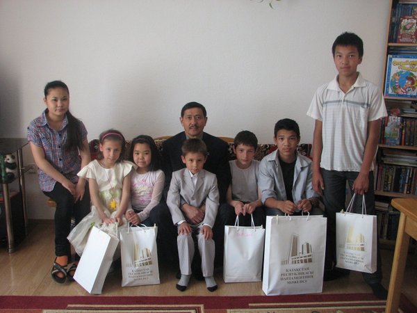 тских праздниках. И сегодня, для детей семейного дома Жулдыз визит депутатов Мажилиса Парламент РК — Тасбулатова Абая Болюкпаевича и Тимощенко Юрия Евгеньевича не был неожиданностью. Дети с радостью встретили в своем доме гостей. Дружба этой SOS семьи с Абаем Болюкпаевичем началась давно 13 лет назад, с его командования Республиканской Гвардией. Большое внимание Абай Болюкпаевич уделяет воспитанию и развитию детей, организации их досуга. Дети часто вспоминают экскурсии в Республиканскую Гвардию, солдатскую кашу и выставки военной техники. Эта сотрудничество успешно продолжается и сейчас, в то время, когда Абай Болюкпаевич приходит в гости уже в качестве депутата Мажилиса Парламент РК. Как обычно, всем детям семьи Абай Болюкпаевич вручил подарки. 5 летняя дружба связывает детей SOS Детской деревни с Радой Украинцев Казахстана. Это совместные праздники, обучение детей рукоделию, выставки. Благодаря Юрию Евгеньевичу дети в 2010 году осуществили свою мечту — побывали в международном лагере Артек. 6 путевок в Артек — подарок ко Дню Защиты детей в 2012 году — мечта любого ребенка. По традиции, мама-воспитательница Кожахметова Гульнара Газизовна встретила гостей с горячими баурсаками. Много радости и приятных моментов общения принес этот праздник как детям, так и взрослым.