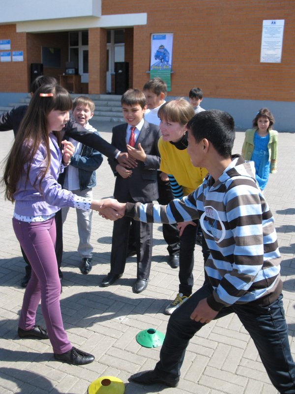 но играли и веселились. Радостным моментом было, что к детям так же присоединились не только взрослые, но и сотрудники. В конце мероприятия воспитанники исполнили несколько зажагательных песен, а гости из солнечного города Алматы подарили семейным домам нетбуки и сладости. На акции присутствовали представители СМИ Темиртау. Учим и испытываем (военно-спортивная игра Калкан) Калкан это военно-спортивная игра, целью которой является воспитание у детей и взрослых чувства взаимовыручки и товарищеской поддержки, пропаганда здорового образа жизни. Это игра смелых, ловких и дружных. Она дает возможность вырабатывать у себя находчивость, расторопность, быструю ориентировку. Действительно, ничто лучше не объединяет людей, как коллективное творческое дело! Акция проходила 11 мая 2012 совместно с ОО ЦОРУС по государственному заказу Отдела внутренней политики г. Темиртау. Данное мероприятие стало традицией для вожатых и детей, оно проводится ежегодно в нашем городе с 2005 года. В этом году это акция приурочена так же к деятельности SOS Школы-игротехников. Участники акции взрослые — вожатые пришкольных лагерей города Темиртау. Им предстояло показать свою силу и ловкость в нескольких конкурсных заданиях. Участники были поделены на несколько команд. Но игра не несла в себе соревновательный характер, она была больше направлена на сплочение коллектива. Команда Ойын bus подготовила и провела 2 станции: 1. Веселая игра ФУТБОЛ на разноцветном парашюте 2. Гонка на лыжах по траве. Станции прошли очень весело, на позитиве. Взрослые очень активно проявили себя. Они испытали на себе все задания, и теперь могут смело проводить их среди своих учеников. Так как следующий этап этой игры будет проводиться вместе с детьми. Практикуемся вместе весело и дружно (игровая акция в городе Абай) В апреле 2012 года на базе SOS Детской деревни Темиртау был проведен тренинг в рамках SOS Школы игротехников, сейчас же команда выезжает на места и вместе в участниками тренинга проводит акции. Такую практическую акцию команда организовала и провела 23 мая 2012 в городе Абай на территории комплекса детский сад-школа Таншолпан. Участниками акции были учащиеся 1 4 классов. Все дети были очень активные, веселые и доброжелательные. Акция проходила на открытой школьной площадке, которая оказалась очень удобной для проведения игр и расположения станций. Взрослые наряду с детьми с большим интересом участвовали в акции. Один из родителей был так растроган работой команды игрового автобуса, что не смог сдержать слез радости. Во время акции команде помогал волонтер из МБО Акниет, а так же преподаватель участник SOS Школы игротехников. Администрация школы с радостью сообщила, что они будут ждать команду с веселыми играми в пришкольном лагере еще раз.