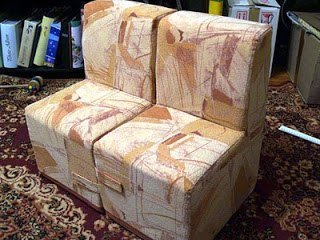 После того как клей засохнет, берем нашу двойную полоску и приклеиваем к каркасу. Приклеиваем в тех местах, где больше всего нагрузка, в нашем случаи это сиденье и спинка. Данную конструкцию нужно склеивать клеим ПВА и оставить сохнуть на 6—7 часов, желательно прижав чем-нибудь тяжёлым. -Далее, нужно склеить диван бумагой. Для это снимем мерки со всех деталей и запишем размер для обшивки. 2 этап. Добавляем мягкости. -Берем поролон толщиной примерно 1 см. и обклеиваем со всех сторон, низ обклеивать не надо. -На сиденье и спинку, добавляем ещё один слой поролона, но не приклеиваем его, а привязываем нитками. На свое усмотрение можете сделать, ещё несколько слоёв. -Теперь мы будем сшить чехлы. Выбранную ткань прикладываем к дивану и обрисовываем с помощью карандаша. Вырезаем детали, вывернем ткань на левую сторону и сошьем. 3 этап. Дополнительные элементы. -В низу можно вшить застежку, чтобы при необходимости можно было снять чехлы. -Так же, можно пришить липучку, что бы два кресла становились диваном. -И ещё не помешает пришить ручки, для удобства. Готово. Подобная мебель получается, очень дешевой и прочной, а её формы зависят, только от вашей фантазии.