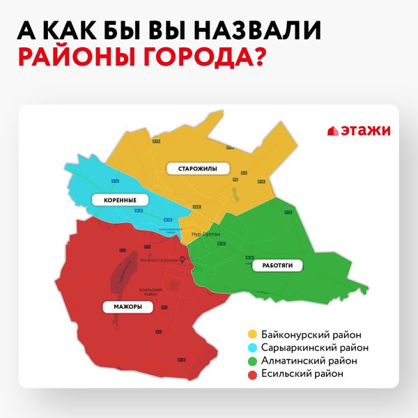 Давайте поиграем ⠀ Напишите ассоциации, которые приходят вам в голову о каждом из районов города: ⠀ Есильский Сарыаркинский Алматинский Байконурский ⠀ Оставляйте свои варианты в комментариях ⠀ ___________________________ Найди свой дом на astana.etagi.com ⠀ Оставляйте номер телефона и получите бесплатную консультацию. ⠀ ⠀ Адрес: ул. Бараева 16, вход А, 3 этаж. ⠀ Скачивайте приложение«Этажи» в Playмаркет и AppStore.