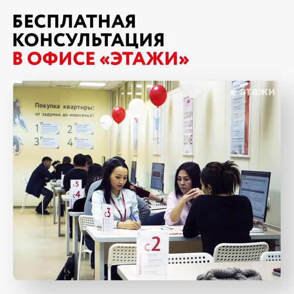 Приглашаем Вас на бесплатные консультации в офис «Этажи». Что входит в консультацию: — Предоставление полной информации по всем ипотечным программам, банкам ⠀ — Индивидуальный расчет ипотеки ⠀ — Предварительный этап одобрения ипотеки ⠀ — Подбор квартир и жилых комплексов ⠀ — Ответы на все интересующие вопросы ⠀ Наши двери открыты ежедневно с 9:00 до 21:00, без выходных. ⠀ Адрес: Бараева 16, вход А, 3 этаж. ⠀ ⠀ Сайт: ⠀ Скачивайте приложение«Этажи» в Playмаркет и AppStore.