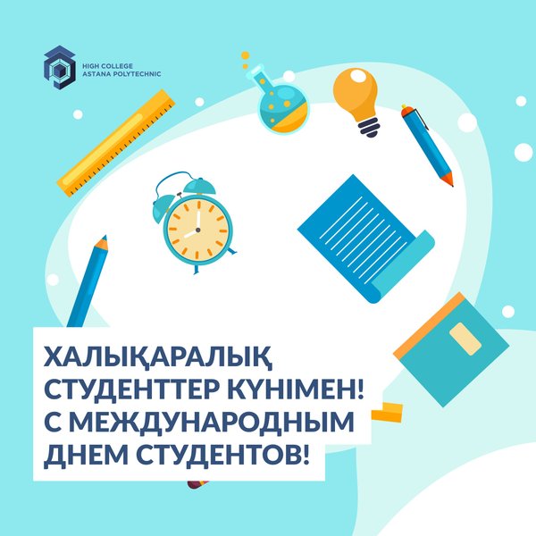 Құрметті студенттер қауымы, студенттер күні құтты болсын! Сіздерге ұмтылмас студенттік өмір, көптеген жаңа ашылулар, жетістіктер мен оқу барысында сəттілік тілейміз! Дорогие студенты, поздравляем вас с Международным днем студентов! Желаем всем политеховцам незабываемой студенческой жизни, массу новых открытий, свершений и удачи на протяжении всего обучения!