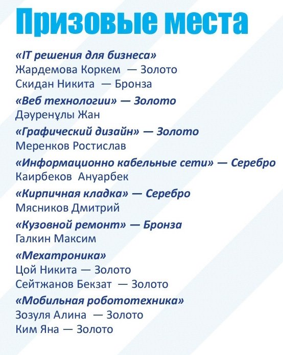 Итоги чемпионата #WorldSkills Золотые медали — 12; Серебряные медали — 4; Бронзовые медали — 4; Медальон - 1. Поздравляем победителей и призеров Высшего колледжа «ASTANA POLYTECHNIC» чемпионата WorldSkills Nur-Sultan 2022