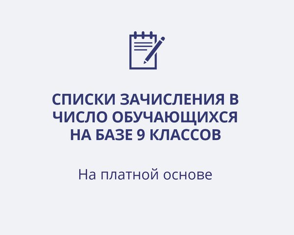 Списки к зачислению. На базе 9 классов на платной основе (коммер.). В списках указаны номера групп (литеры).