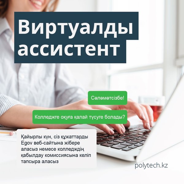 ТАЛАПКЕР! Колледж сайтында «Виртуалды қабылдау комиссиясы» бөлімі жəне виртуалды ассистент (кеңесші) жұмыс атқарады. Сайтқа кіріңіз, сұрақтарыңызды сұраңыз, кеңес алыңыз жəне оқуға түсушілерге арналған толық ақпаратты біліңіз АБИТУРИЕНТ! На сайте колледжа есть раздел «Виртуальная приемная комиссия» и виртуальный ассистент (консультант). Зайдите, задайте свои вопросы, получите консультацию и всю необходимую информацию для поступающих polytech.kz