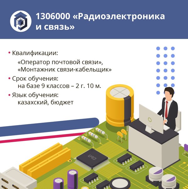 ове, на базе 9 классов, на государственном языке, срок обучения 2 года 10 месяцев. «Эксплуатация линейных сооружений электросвязи и проводного вещания» Квалификация: «Электромонтер линейных сооружений электросвязи и проводного вещания» — на бюджетной основе, на базе 9 классов, на русском языке, срок обучения 2 года 10 месяцев.