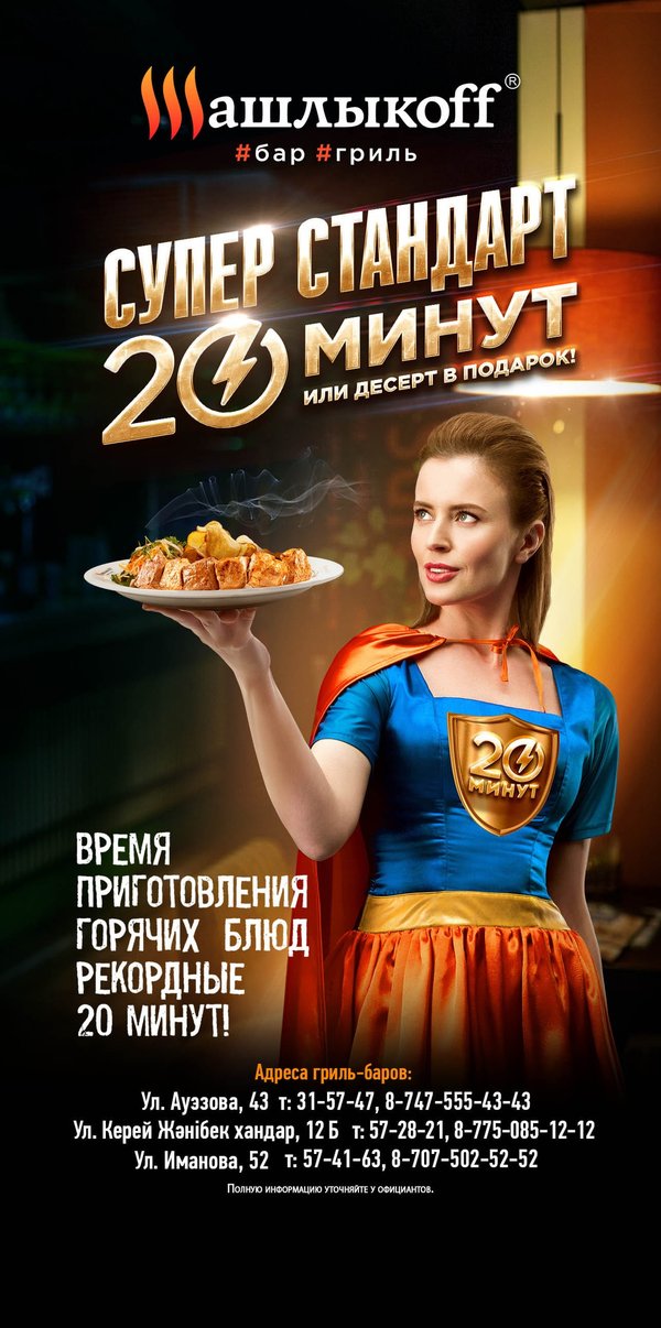 Друзья, «ШашлыкоFF» обещает, что ты получите свои блюда гриль и напитки не позднее, чем 20 минут с момента заказа ⠀ Наш стандарт «20 МИНУТ» работает безукоризненно ⏳⠀ ⠀ Приходи и убедись в этом сам ⠀ ⠀ Отчет времени начинается с момента, когда официант принял заказ и отошел от твоего столика!* ⏰