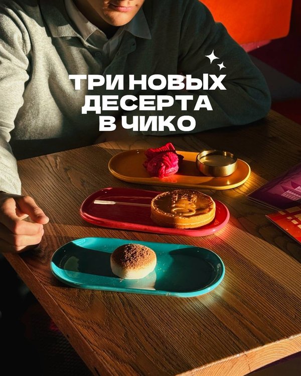 3 НОВЫХ ДЕСЕРТА В РЕСТОРАНЕ ЧИКО Каждые пол года мы проводим масштабное обновление меню и добавляем интересные блюда для новых ощущений! ПУНОППАН С ЧЕРНИКОЙ МОТИ СНИКЕРС СЫРНАЯ МОНЕТКА С ЗАВАРНЫМ КРЕМОМ Обязательно попробуйте новинки в нашем домике, ведь Чико — это азиатский уголок вкуса и радости!