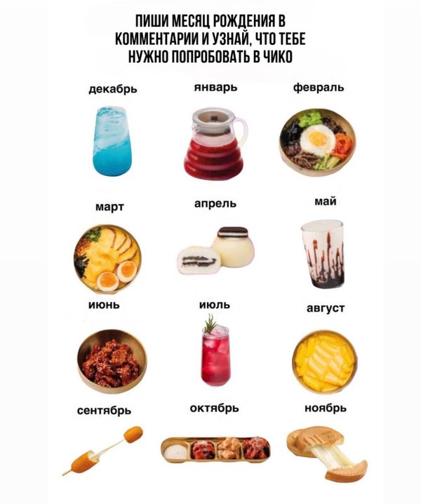 Узнай, что обязательно нужно попробовать в Чико! Пиши месяц рождения в комменты