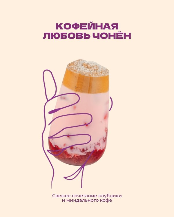 Для любителей кофе, клубники и нежного молока! Друзья, предлагаем попробовать напиток, который уже стал любимцем: КОФЕЙНАЯ ЛЮБОВЬ ЧОНЁН Нежный вкус клубники и насыщенные нотки миндального кофе создают уникальный вкус для тех, кто ищет новые впечатления!
