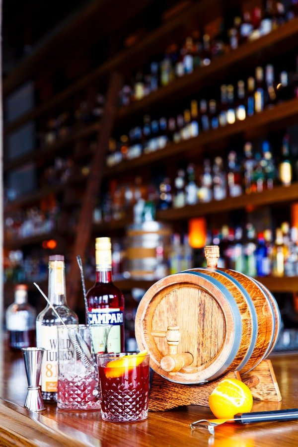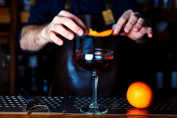 Красавец в бокале — это выдержанный «Бульвардье». Филигранная смесь нескольких видов алкоголя, которые, подружившись, провели вместе несколько месяц в специальной бочке. Обменявшись флюидами, стали цельной смесью, которую пробовать нужно с особым настроением алко-гурмана. Кстати, говоря, на носу праздники и сей напиток мы можем празднично оформить, превратив в элегантный подарок для ценителей.