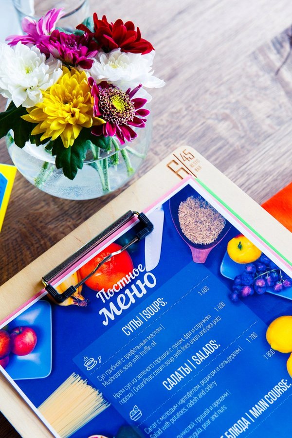 Держите пост? Нам есть что вам предложит. Отдельное меню — постное, но разнообразное, с затейливыми рецептами и подачей. Работаем с 17.00, приходите ужинать.