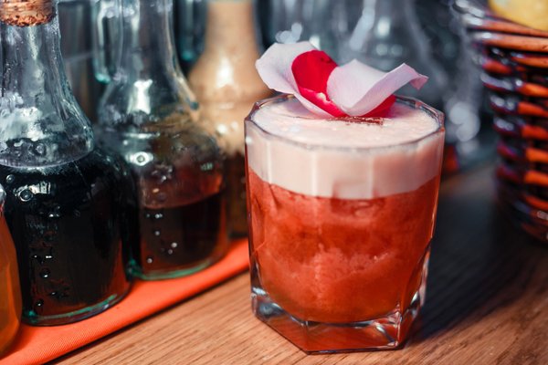 Например, Red & White. Это белое сухое вино и белое крепленое испанское вино, настоянное на запеченной груше. В составе также винный кордиал и сироп гибискуса с тропическим фруктом!
