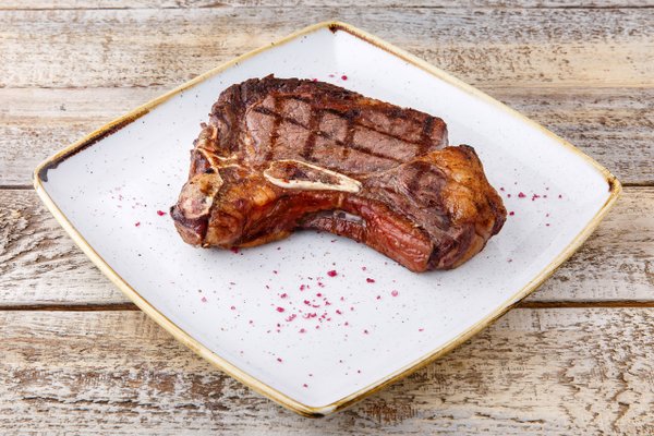 Рибай-стейк из местной мраморной говядины — наша особая гордость. С легким ореховым ароматом и правильной прожаркой он становится идеальным ужином в