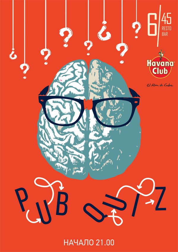 Вторник — это тот самый случай, когда в #RestoBar645 можно не только вкусно выпить и поужинать, но и слегка размять мозги: сегодня играем в Pub Quiz. Собирайте команду (даже двое — это уже команда), отвечайте на простые вопросы и выигрывайте призы! Начинаем в 21.00.