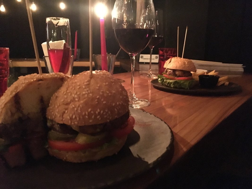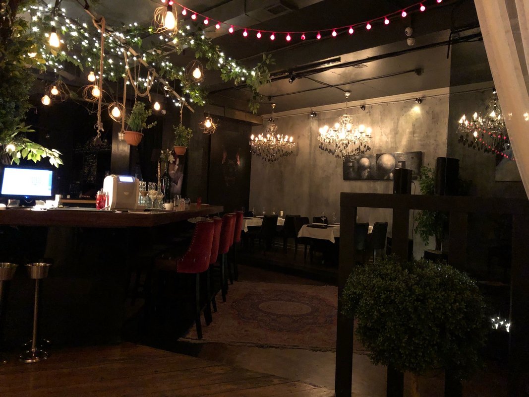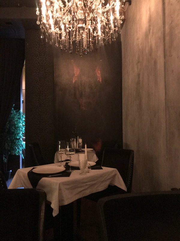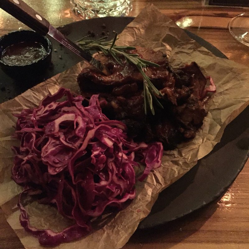 Кухня вкусная, интересные коктейли. На фото нарезка из мраморного мяса с капустой, это стартер. Тихая обстановка, приглушённый свет, хорошая музыка. Не тусовочное место. Хорошее месторасположение.